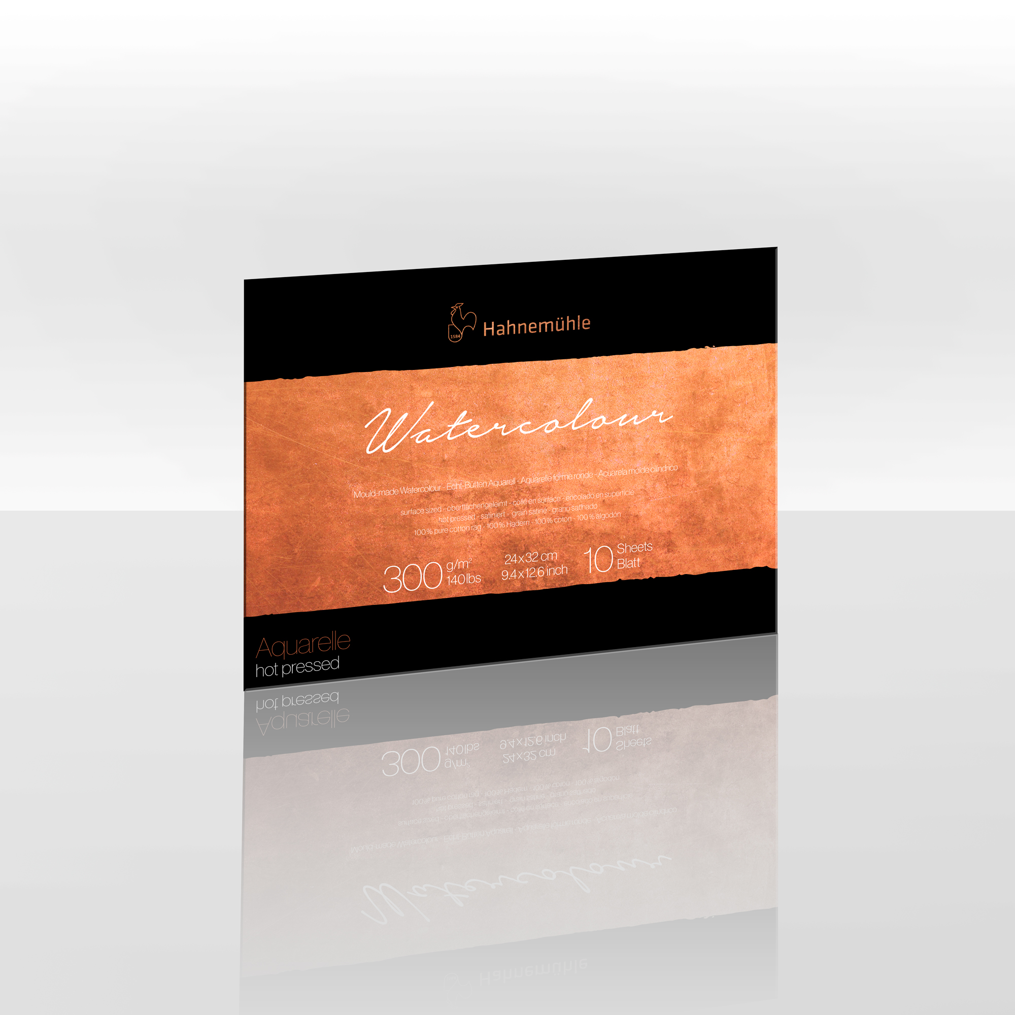Hahnemühle Watercolour 300 and 640 set new standards for high-quality watercolour papers. A carefully chosen variety of cotton offers extremely strong fibres and incomparable purity. The selection of the best raw materials and exclusively natural filler materials gives the Watercolour 300 and Watercolour 640 papers their unparalleled quality.The prized cotton papers, Watercolour 300 and 640, are characterised by a very durable paper surface that is well suited for demanding watercolour techniques.The fibres do not lift, rub off or loosen, even when applying multiple layers of colour, or when using masking fluids and tapes. This paper lets you use the most beautiful colours and create remarkable wet-on-wet paintings.