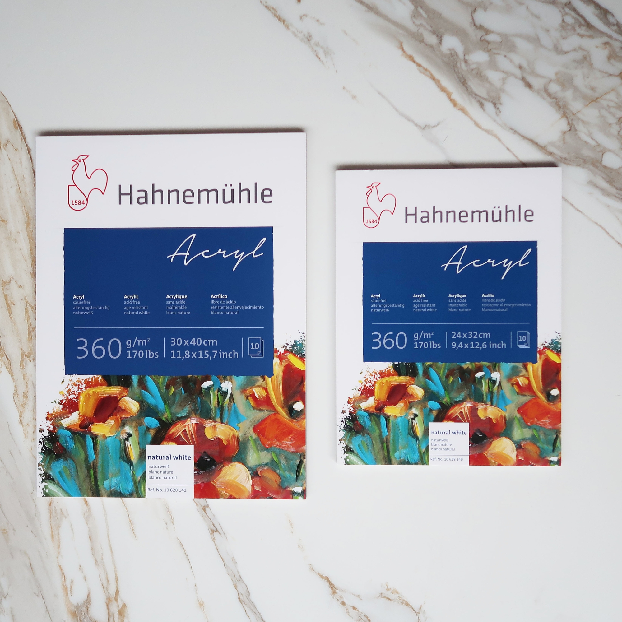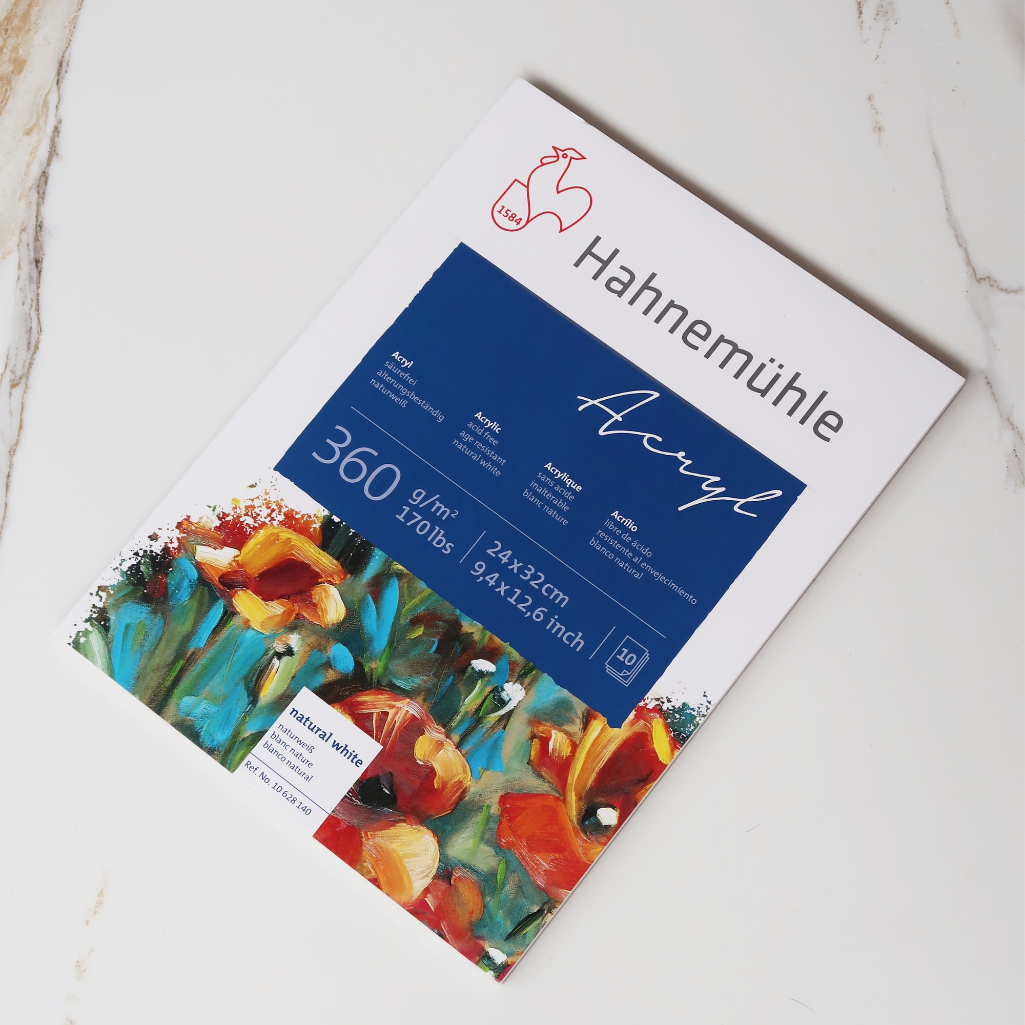 A natural white paper specially designed for acrylic painting, acid free and age resistant. It has a light felt finish that absorbs the colours and allows multi layered applications without fear of colours losing their brightness. The natural white paper is made from 100% wood pulp, the block is glued on four sides to ensure flatness when wet. Acid free and age resistant.