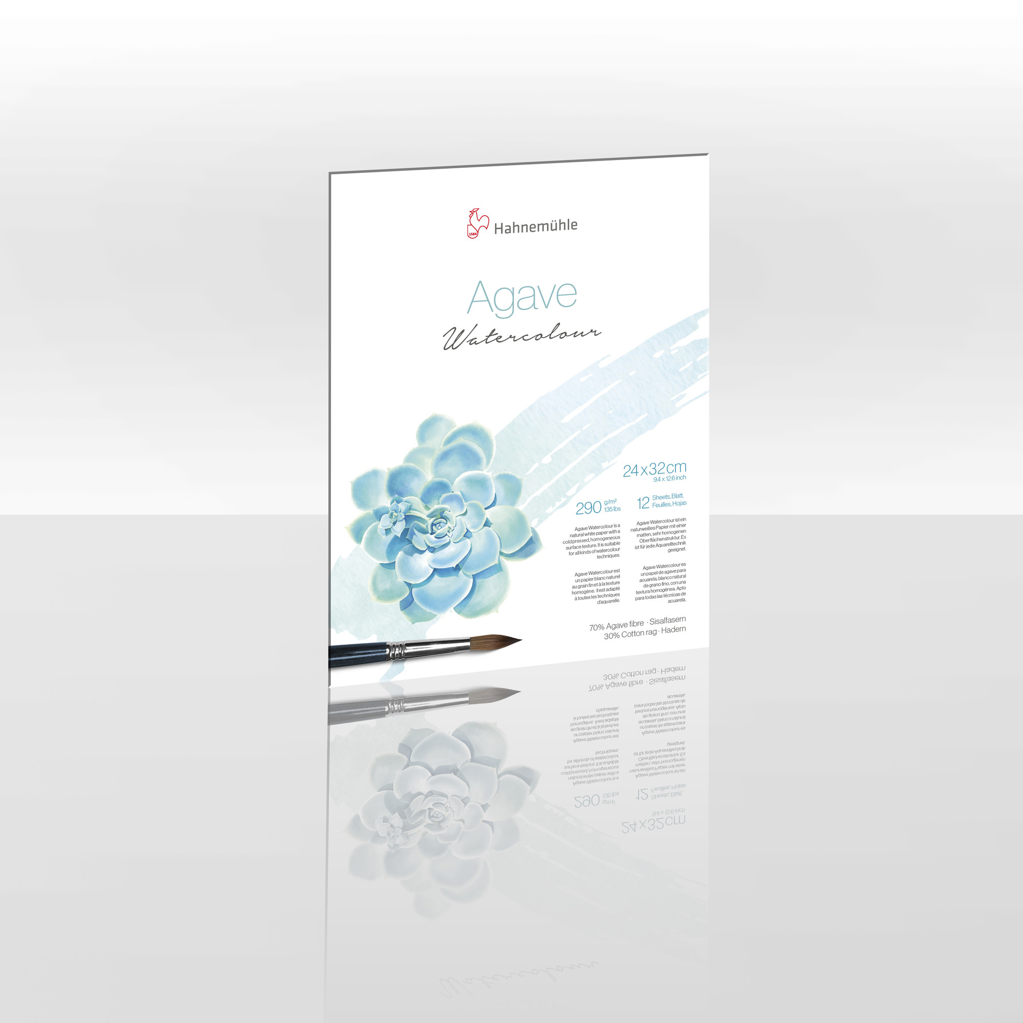 Agave Watercolour is a natural white watercolour paper. it's characterised by its cold pressed and very homogenous surface texture. It is suitable for all kinds of watercolour techniques, especially for glazing. The special surface of the 290gsm paper allows brushes to slide over the surface easily and allows for brilliant colour gradients. Washouts and corrections are simple possibilities. Agave watercolour is acid-free, age resistant and vegan. Agave is a fast-growing and resource saving raw material, the ideal painting surface for environmentally conscious artists. All Agave Watercolour blocks are glued on 4 sides. Individual sheets can be easily removed with Hahnemühle"s Bamboo folder.