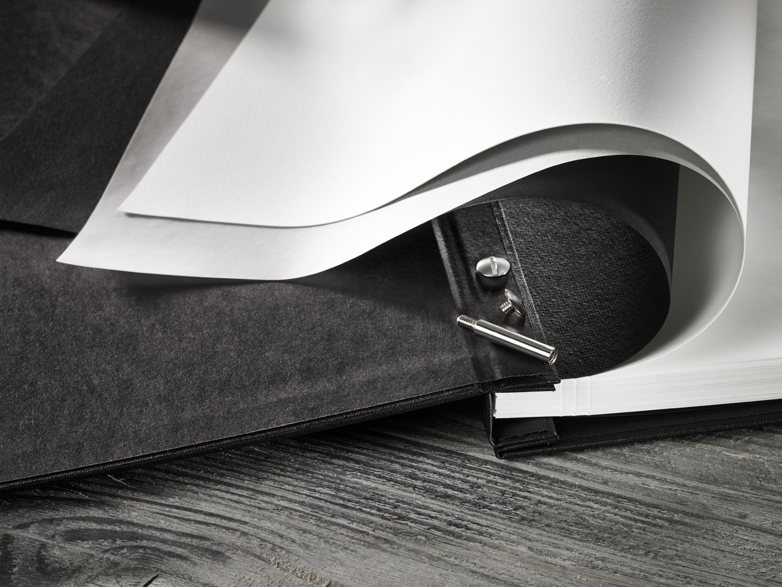 The cover set is available in two neutral colours – black and light sand grey. You can choose from three different formats: DIN A4 landscape, DIN A3 landscape, and 12"x12" square. All formats and colours can be freely combined with four different paper qualities for printing the album content pages. Thereby, you can create your own individual and long-lasting photo album.