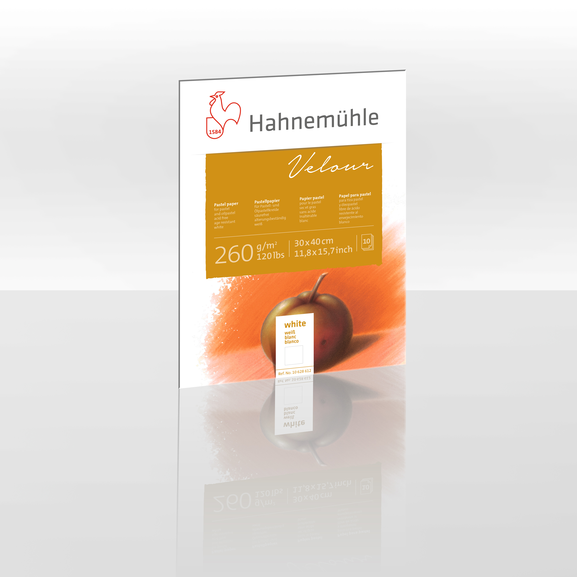 Pastel Velour is 260 gsm paper with a unique velvet textured surface, ideal for pastels, chalks and charcoal. The surface holds onto colour and marks, making it excellent for detailed works and added texture.