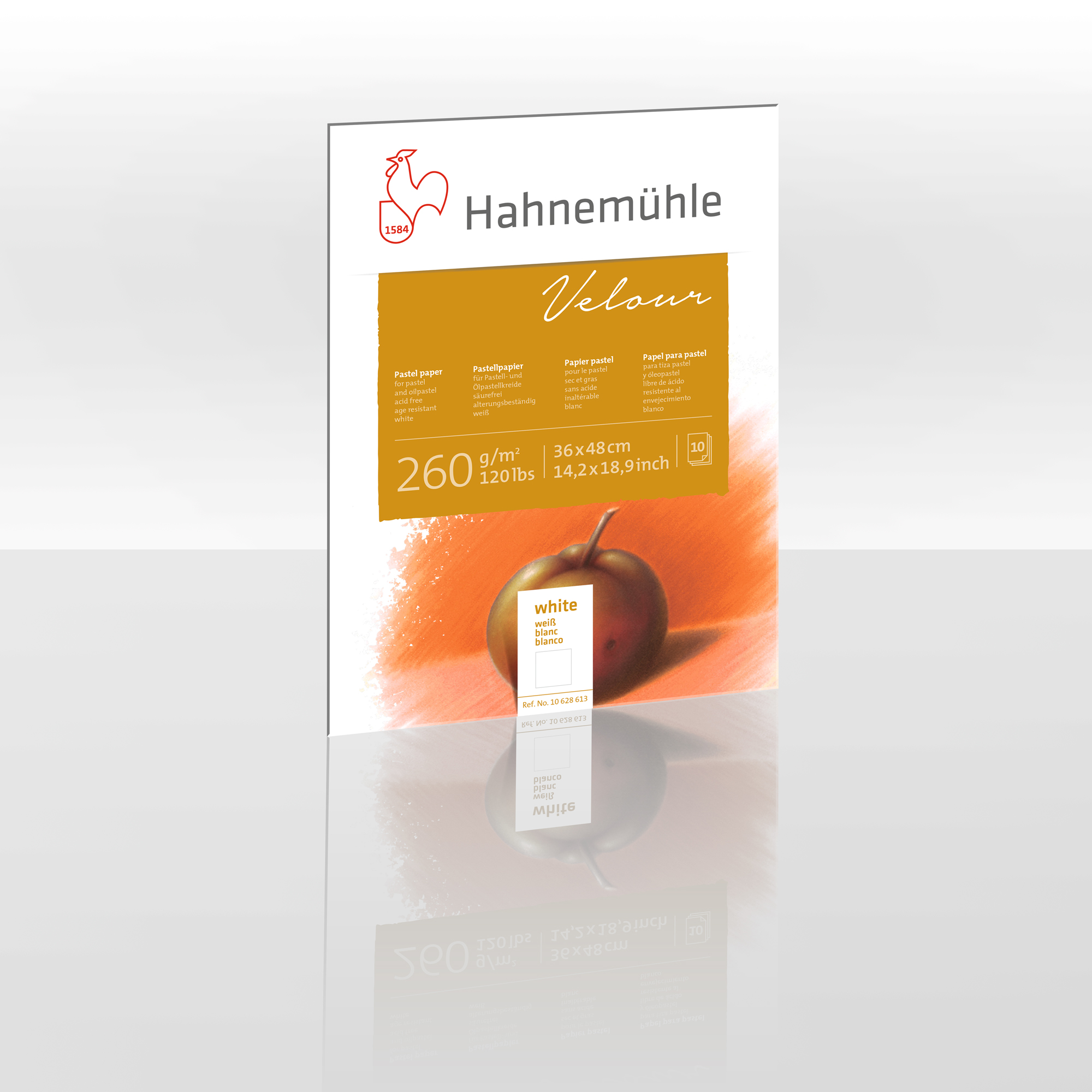 Pastel Velour is 260 gsm paper with a unique velvet textured surface, ideal for pastels, chalks and charcoal. The surface holds onto colour and marks, making it excellent for detailed works and added texture.