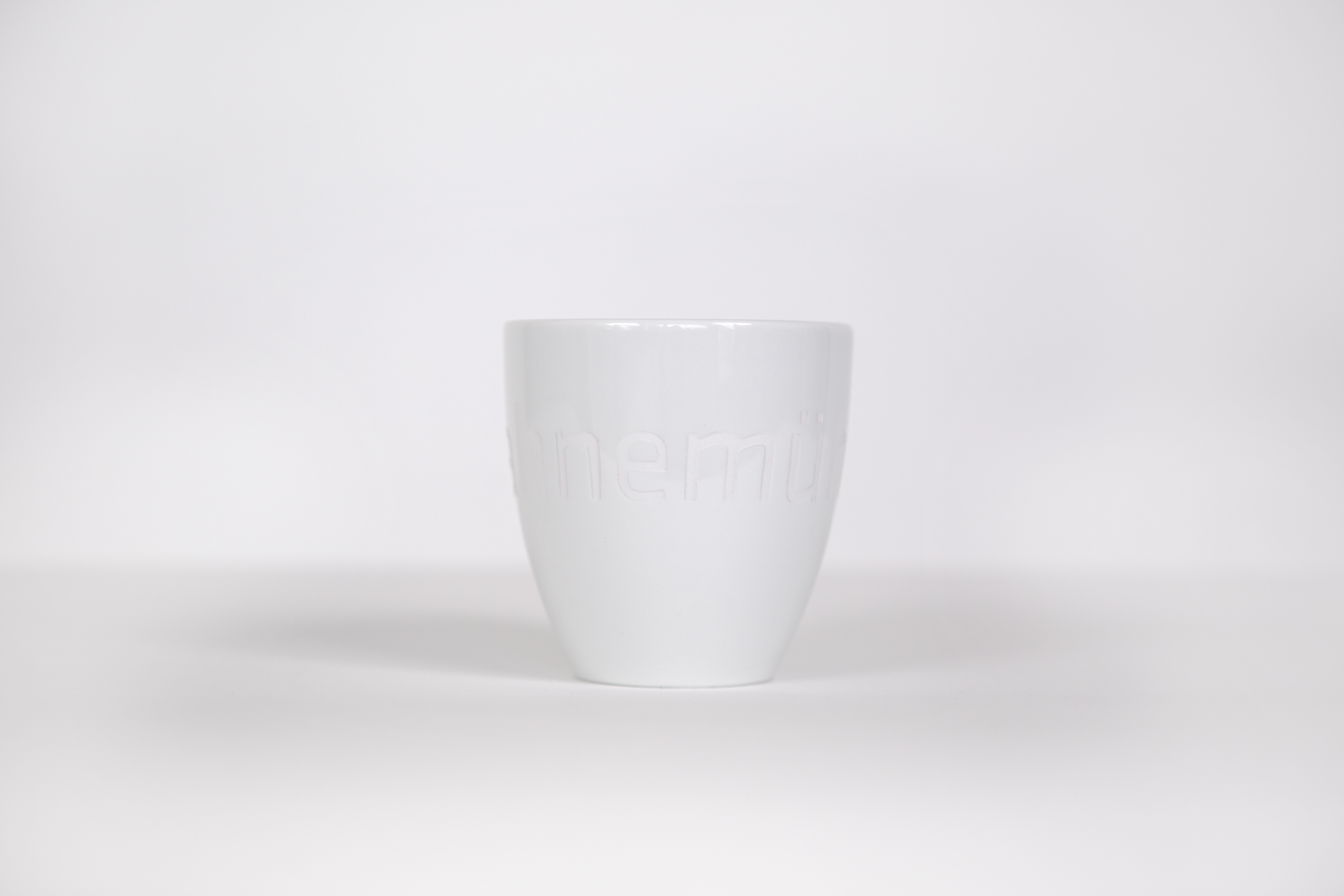 Ideal for coffee or tea: the large white mug with the Hahnemühle lettering in relief on the outside and the red cockerel on the base of the mug on the inside. Our "Made in Germany" logo can be found on the outside of the mug. And there's plenty of room inside: