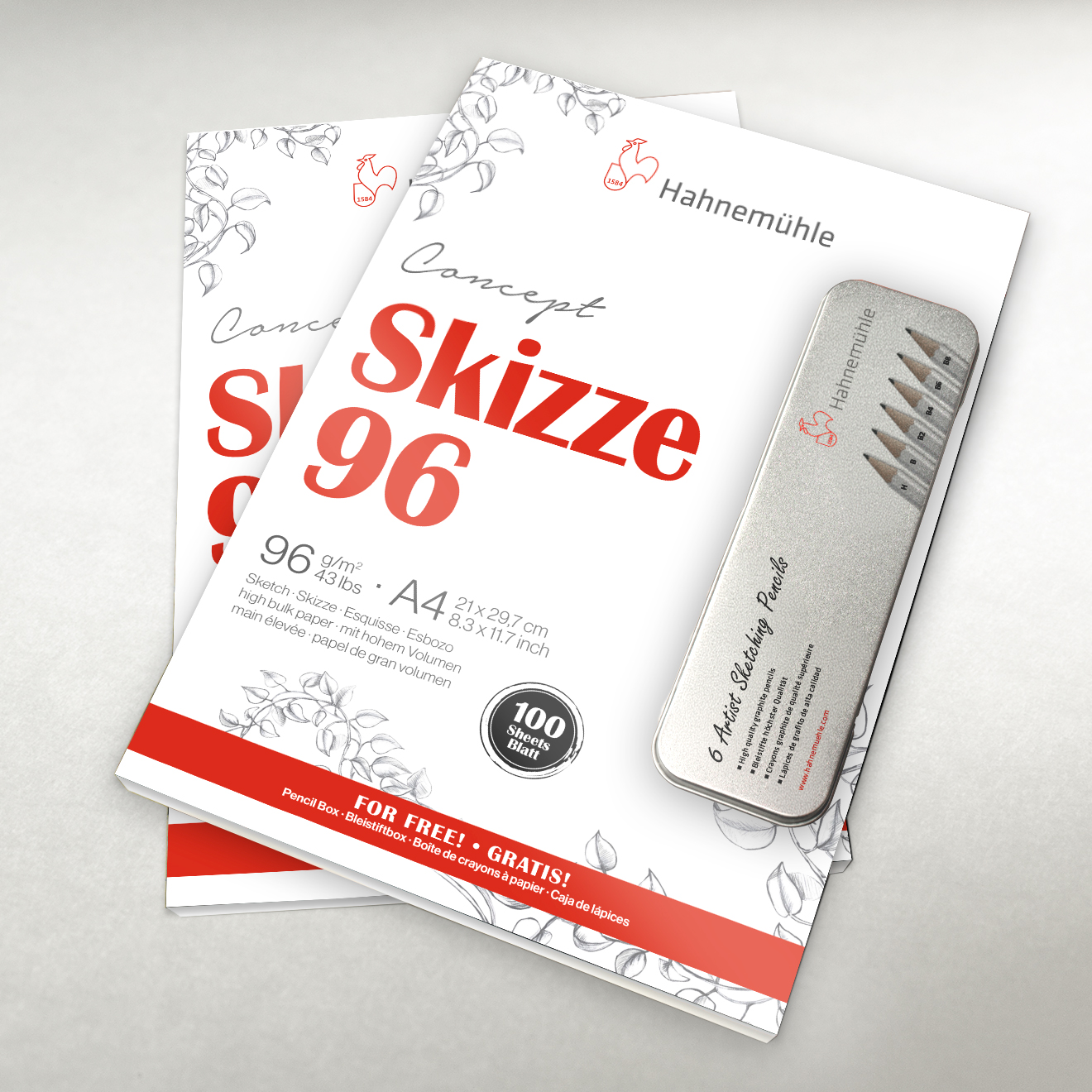Complimentary for your customers: the sketch pad comes with a FREE pencil box, including pencils in six different grades to give artists scope for experimenting.