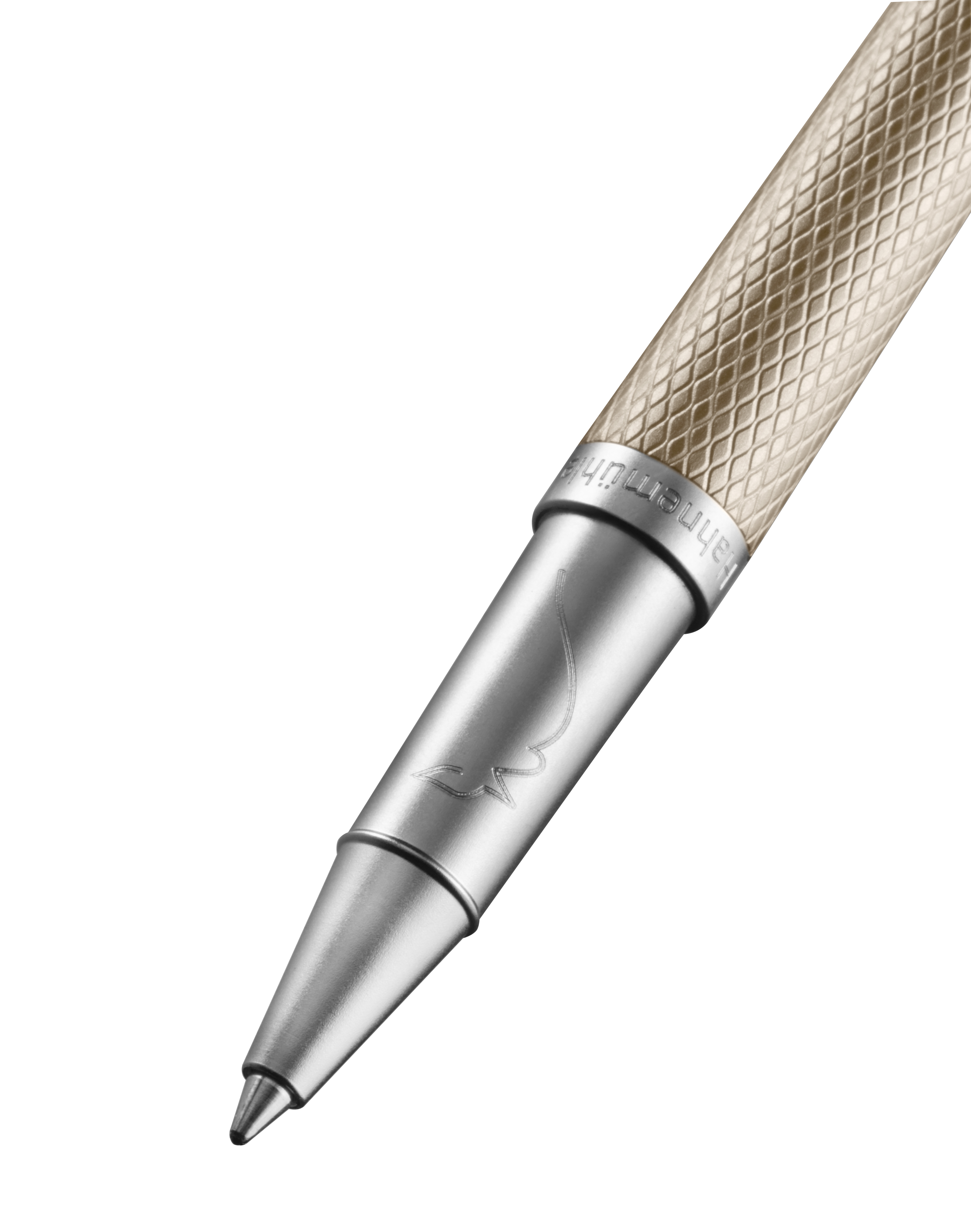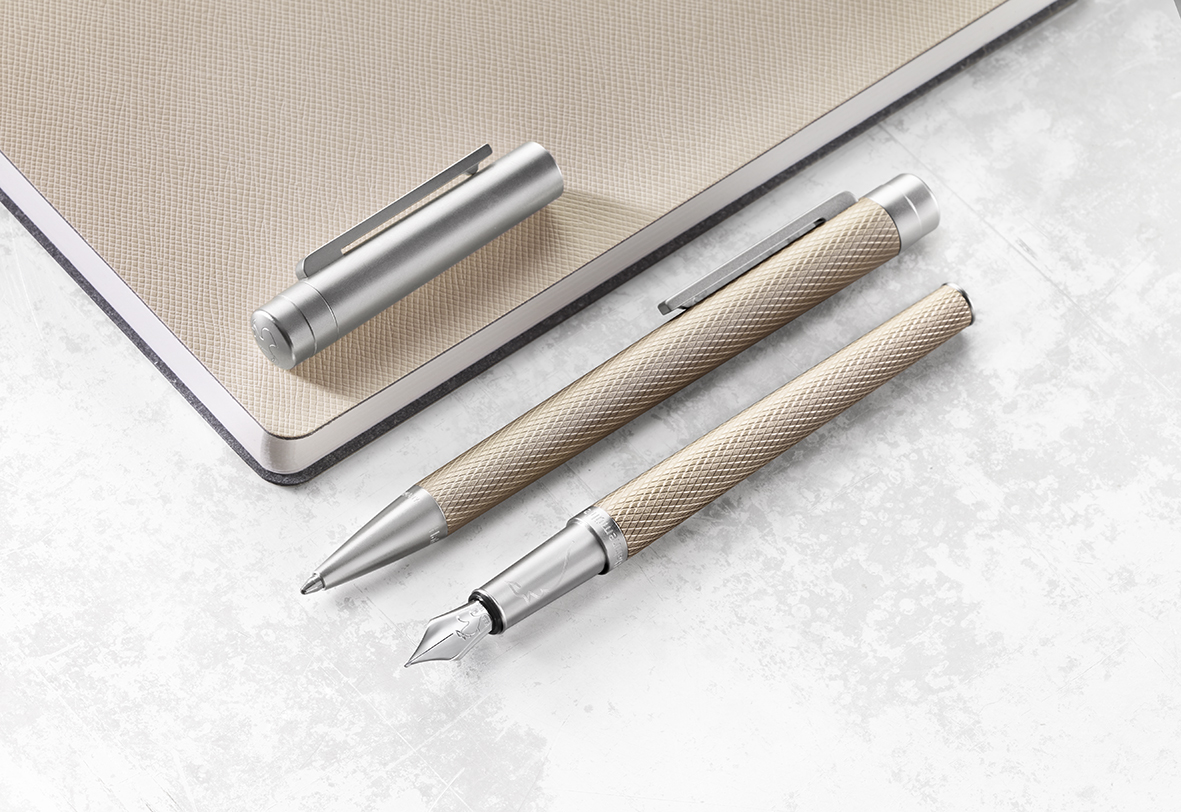 A perfectly balanced, harmonious flow of ink, a soft yet textured surface and sophisticated, muted colours are the hallmarks of the writing instruments in the ‘Slim Edition’ range. The decorative pattern on the fountain pens, rollerballs and ballpoint pens is evocative of the moulds used by Hahnemühle’s papermakers. Delicate laser engraving featuring our trademark cockerel adds a striking, unique detail. Every pen sits comfortably and securely in your hand, and glides over the page effortlessly. The fountain pens in this range similarly include an engraved, rhodium-plated 18-carat gold nib with stroke width F, M or B.
