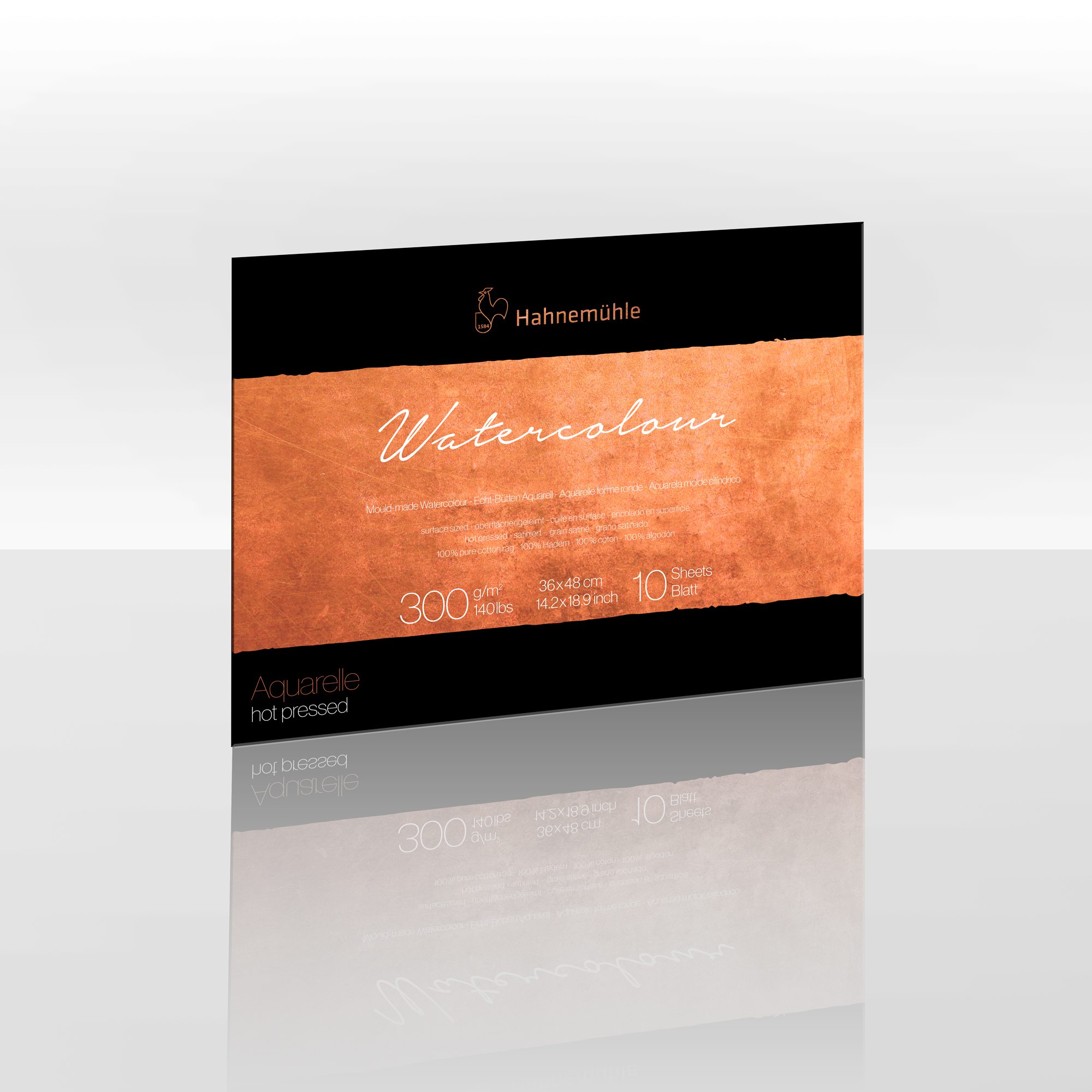 Hahnemühle Watercolour 300 and 640 set new standards for high-quality watercolour papers. A carefully chosen variety of cotton offers extremely strong fibres and incomparable purity. The selection of the best raw materials and exclusively natural filler materials gives the Watercolour 300 and Watercolour 640 papers their unparalleled quality.The prized cotton papers, Watercolour 300 and 640, are characterised by a very durable paper surface that is well suited for demanding watercolour techniques.The fibres do not lift, rub off or loosen, even when applying multiple layers of colour, or when using masking fluids and tapes. This paper lets you use the most beautiful colours and create remarkable wet-on-wet paintings.