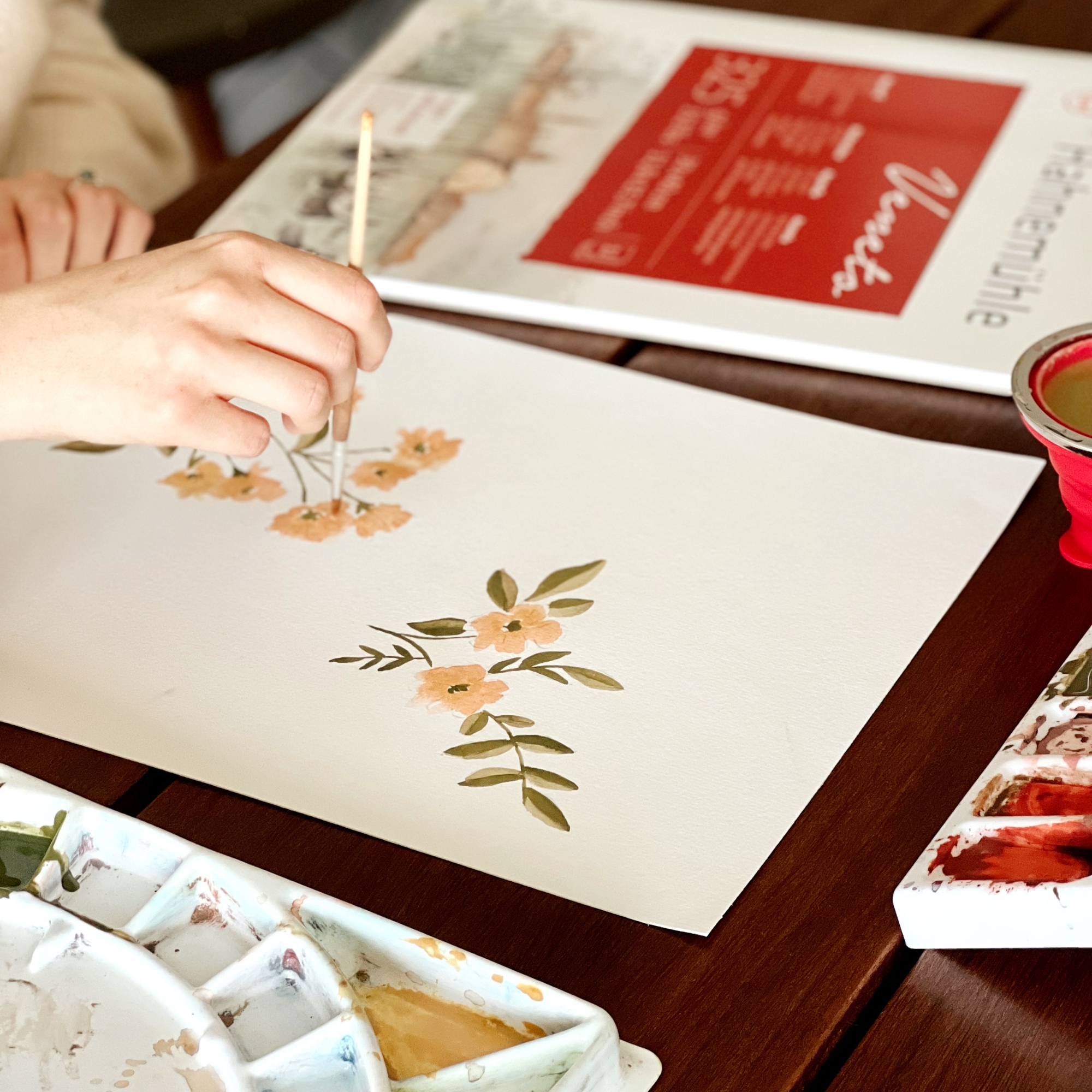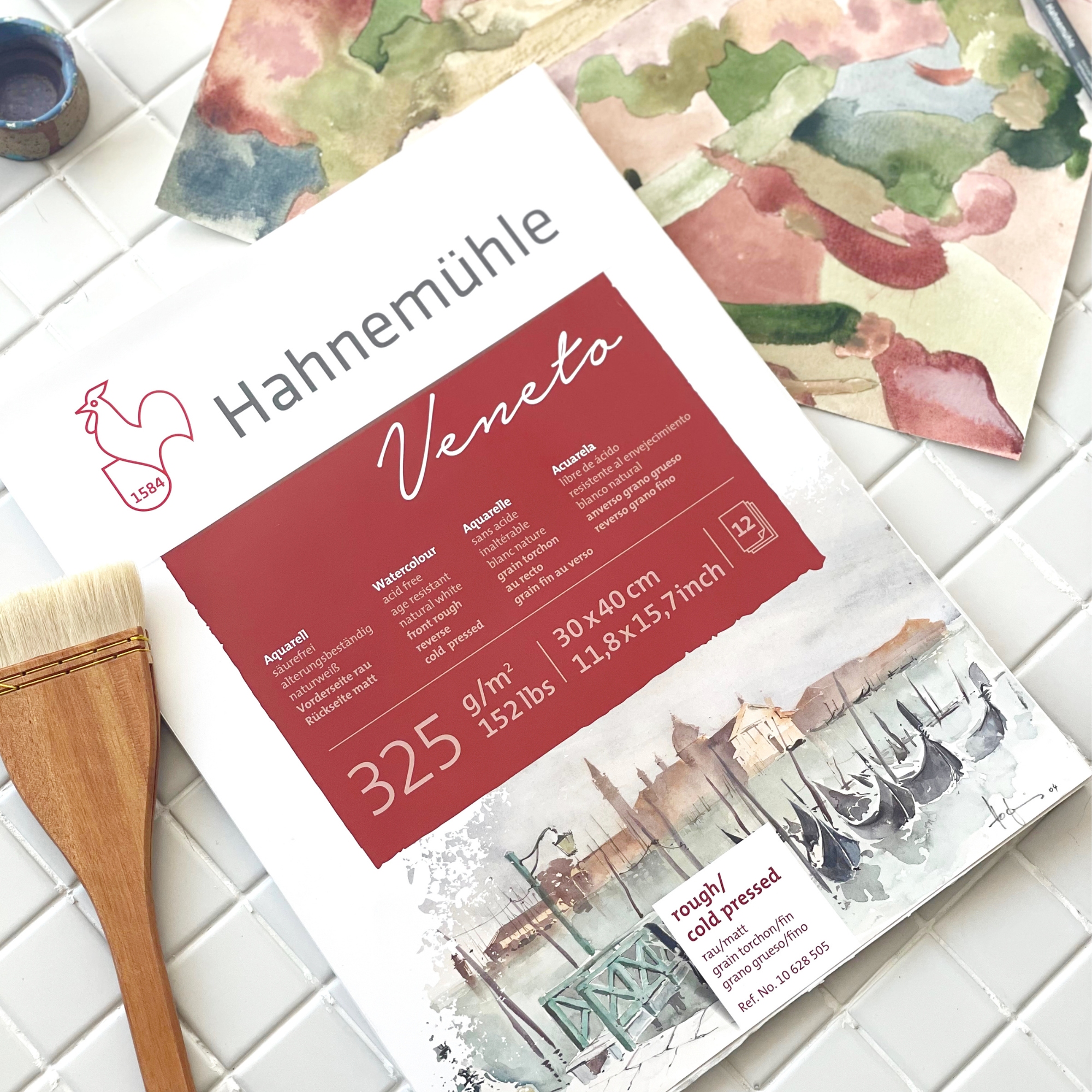 "Veneto" is a 325 gsm, natural white watercolour paper. The front side of this paper has the structure and flow behaviour of a high quality Rough Mould-made paper. While the reverse has a cold pressed surface. The paper is acid and lignum free, and suitable for all wet painting techniques. The blocks are glued on four sides to ensure flatness when wet.